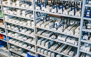 Schaltschrank Komponente wie Sicherungen, Steuerungsmodule, Klemmen sind aus unserem Lager zu abrufen.